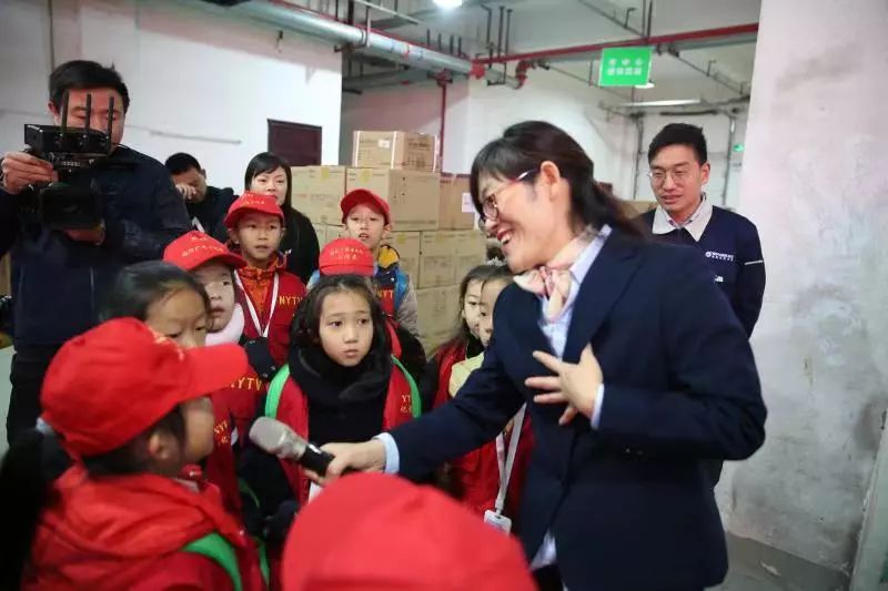 高架庫內(nèi),工作人員展示了高位叉車的運(yùn)作流程,在看到叉車能夠平穩(wěn)安全、準(zhǔn)確無誤的將貨物運(yùn)送至離地8米高的貨位區(qū)時,小記者們連連驚嘆。