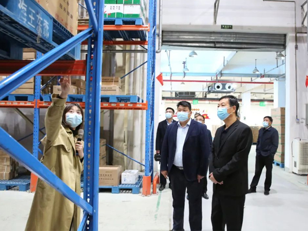 2022年4月13日上午,南陽市政協(xié)副主席李敬鐸、南陽高新技術產業(yè)開發(fā)區(qū)人大工作委員會副主任周明宏、南陽高新技術產業(yè)開發(fā)區(qū)副主任楊東杰等領導一行蒞臨我公司調研二期項目建設進度,并實地查看中藥材倉儲中心建設情況,河南東森總經理黎富永、東森物流園區(qū)總經理蔡雨雷全程陪同。