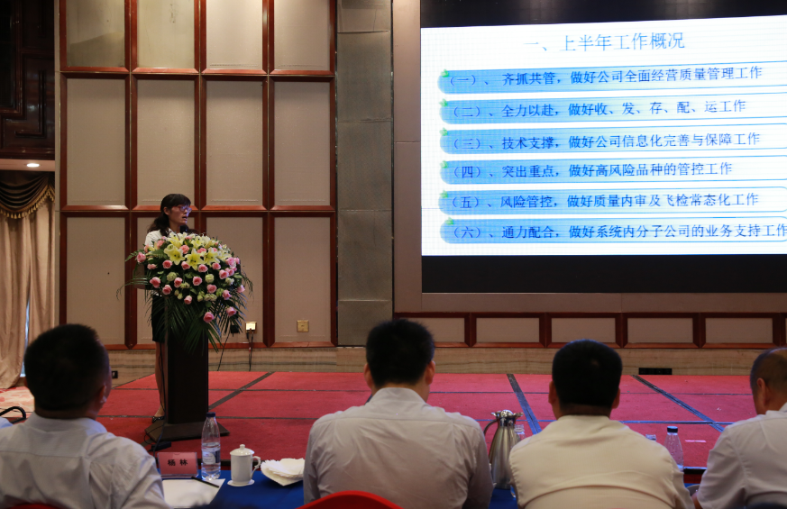 負(fù)責(zé)信息部、儲(chǔ)運(yùn)部、質(zhì)管部的畢文艷副總經(jīng)理詳細(xì)講述了所負(fù)責(zé)各部門在日常工作的相互配合,為公司提供了堅(jiān)實(shí)的后勤保障。下半年主要的工作任務(wù)是完成公司制定的年度銷售目標(biāo)任務(wù),做好日常工作管理,打造常態(tài)化管控體系,提升公司抗風(fēng)險(xiǎn)能力和水平,確保公司信息系統(tǒng)正常、高效運(yùn)轉(zhuǎn)。
