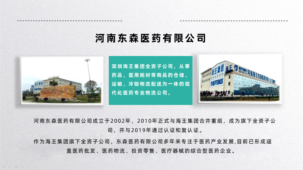河南東森醫(yī)藥有限公司成立于2002年8月,注冊資金1.6億元,是深圳海王集團(tuán)旗下河南海王醫(yī)藥控股子公司。