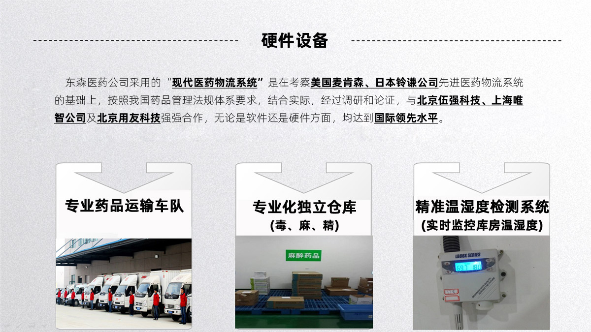 公司專注于醫(yī)藥產(chǎn)業(yè)發(fā)展,目前已形成涵蓋醫(yī)藥批發(fā)、醫(yī)藥物流、連鎖零售、醫(yī)療器械的綜合全產(chǎn)業(yè)鏈。作為豫中南較為規(guī)范、較具規(guī)模、具有市場(chǎng)競(jìng)爭(zhēng)力和活力的醫(yī)藥經(jīng)營(yíng)企業(yè),河南東森目前已與國(guó)內(nèi)1000余家藥品生產(chǎn)企業(yè)建立了良好的代、銷業(yè)務(wù),與600余家醫(yī)療機(jī)構(gòu)建立了穩(wěn)定長(zhǎng)期的戰(zhàn)略合作關(guān)系。經(jīng)過(guò)多年的穩(wěn)定發(fā)展,公司先后榮獲省、市各級(jí)頒發(fā)的各項(xiàng)榮譽(yù):“藥品冷鏈標(biāo)準(zhǔn)達(dá)標(biāo)企業(yè)” “中國(guó)醫(yī)藥商業(yè)百?gòu)?qiáng)”“3A級(jí)信用企業(yè)”“河南省示范物流園區(qū)”“河南省商業(yè)百?gòu)?qiáng)” “河南省服務(wù)業(yè)百戶領(lǐng)軍企業(yè)”“河南省民營(yíng)企業(yè)現(xiàn)代服務(wù)業(yè)30強(qiáng)” “南陽(yáng)民營(yíng)30強(qiáng)”等。